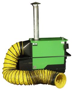 Een kachel met toevoerbuis.